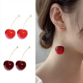 Korean Fashion Red Cherry Drop Earrings For Women Jewelry 2025 Trending New Women’s Sweet Cute Red Fruit Earrings Accessories