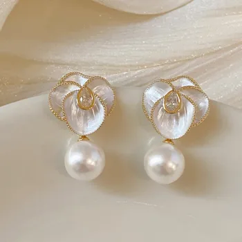 925 Silver Needle Korean Fashion Crystal Flower Earrings For Women Jewelry 2025 Trending New Luxury Women’s Pearl Drop Earrings
