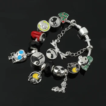 Disney The Nightmare Before Christmas Charms Bracelets Cute Jack Skellington Pendant Bangle Beads Bracelet for Women Jewelry
