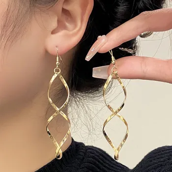 Korean Fashion Long Spiral Curved Drop Earrings For Women Metal Earing Jewelry 2025 Trending New Women’s Wave Curve Earrings