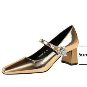 BIGTREE Shoes Luxury Rhinestone Woman Pumps Block Heels Women’s Shoes Thick With Mid Heel Ladies Shoes Elegant Banquet Shoes