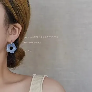 2025 New Multicolor Transparent Acrylic Resin Marbling Flower Drop Earrings for Women Gold Color Ear Buckle Fashion Jewelry