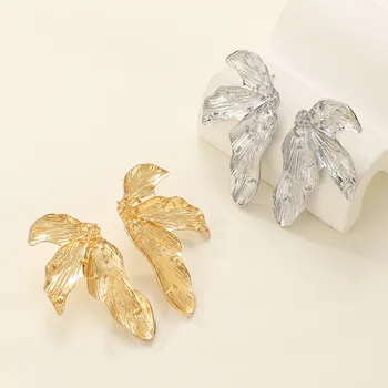 Exaggerated Irregular Leaf Earrings For Women Metal Earing Jewelry 2025 Trending Hawaiian Holiday Style Big Gold Color Earrings