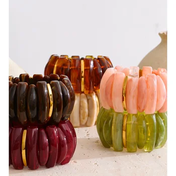 Yhpup 60mm Acrylic Resin Wide Elasticity Big Bracelet Bangle for Women Exclusive Design Stainless Steel Statement Wrist Jewelry