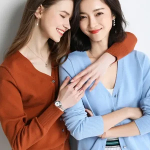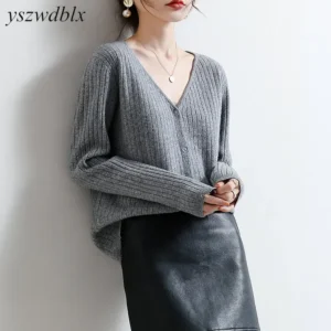 YSZWDBLX Women Cardigans 2025 Solid V-neck Knitted Autumn Winter Long Sleeve Sweater Korean Fashion Loose Fit Woman Cardigan