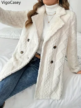 RARF 2024 New Woman’s Fashion Thick Warm Faux Shearling Jacket Coat Vintage Long Sleeve Belt Hem Female Outerw