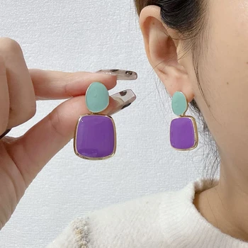 925 Silver Needle Korean Fashion Purple Crystal Earrings For Women Jewelry 2025 Trending New Luxury Zircon Square Drop Earrings