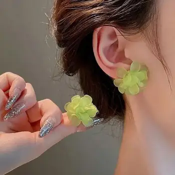 925 Silver Needle Korean Fashion Sweet Flower Earrings For Women Jewelry 2025 Trending French Women’s Green White Stud Earrings