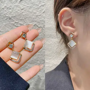 925 Silver Needle Korean Fashion Square Pearl Drop Earrings For Women Jewelry 2025 Trending New Women’s Vintage Zircon Earrings