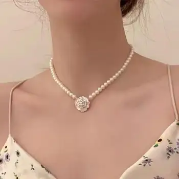 Korean Fashion Camellia Pearl Necklace For Women Jewelry Choker 2025 Trending New Sweet Women’s Flower Necklaces Colar Kolye