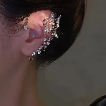 Korean Crystal Clip Earrings For Women Without Hole Jewelry 2025 Trending Luxury Fake Single Ear Bone Clip Earrings Ear Cuffs