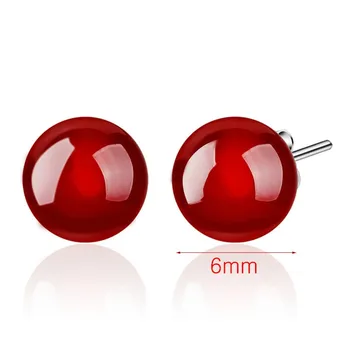 Korean Fashion Red Black Natural Stone Earrings For Women Jewelry Trendy Silver Plated Party Wedding Stud Earrings Wholesale