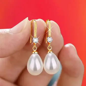 Korean Fashion Zircon Pearl Drop Earrings For Women Jewelry 2025 Trending New Luxury Bridal Water Droplet Pearl Earrings Brincos