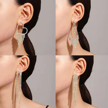 New Long Crystal Tassel Earrings For Women Jewelry 2025 Trending Exaggerated Luxury Zircon Butterfly Heart Women’s Drop Earrings