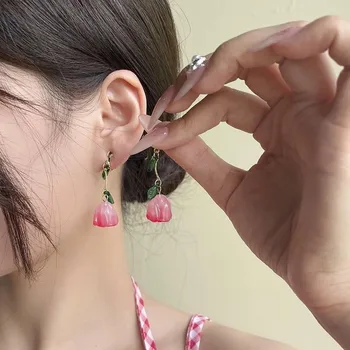 New Korean Fashion Tulip Leaf Earrings For Women Girl Jewelry 2025 Trending Sweet Fresh Women’s Flower Drop Earrings Accessories