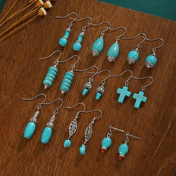 New Fashion Bohemian Turquoise Drop Earrings For Women Jewelry 2025 Trending Vintage Ethnic Stone Women’s Earrings Accessories