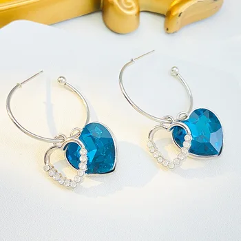 Vintage Fashion Blue Crystal Heart Drop Earrings For Women Jewelry 2025 Trending New Luxury Ocean Heart Zircon Earrings Brincos