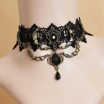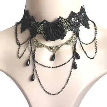 Vintage Gothic Black Lace Necklace For Women Jewelry Choker 2025 Trending New Women’s Black Water Droplet Chain Tassel Necklaces