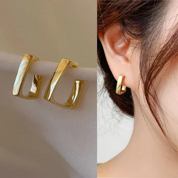 Vintage Fashion Geometric Earrings For Women Jewelry New Round Heat Circle C-shape Wedding Party Gold Color Earrings Pendientes