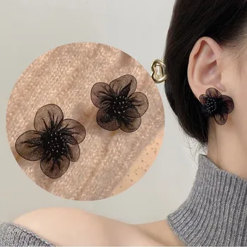 Vintage Wine Red Flocking Flower Drop Earrings For Women Jewelry 2025 Trending Long Bowknot Crystal Pearl Bridal Dress Earrings