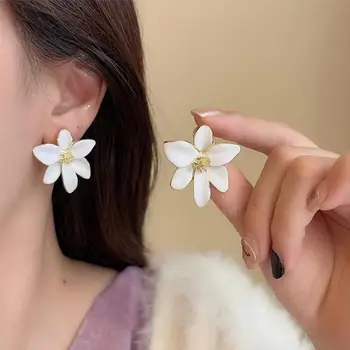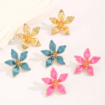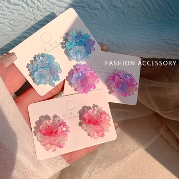 925 Silver Needle Korean Drip Oil Flower Pearl Drop Earrings For Women Jewelry 2025 Trending New Sweet Pink Blue Flower Earrings