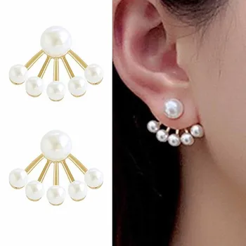 925 Silver Needle Korean Fashion Back Hanging Pearl Earrings For Women Jewelry 2025 Trending Luxury Fan-shaped Stud Earrings New