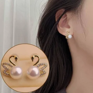925 Silver Needle Hollow Crystal Swan Earrings For Women Korean Jewelry 2025 Trending New Luxury Animal Pearl Stud Earrings Gift