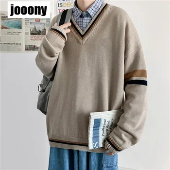 Men’s V-neck Sweater Autumn And Winter Knitted Sweater Korean College Style Couple Loose Long Sleeve Top Preppy