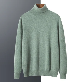 Autumn Mens High Quality Knitted Turtleneck Sweater Slim Fit Long Sleeve Anti-pilling Pullover Solid Color Trend Men Streetwea