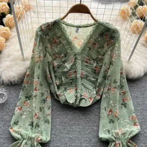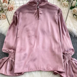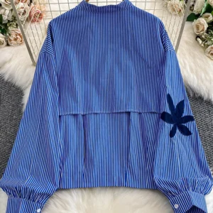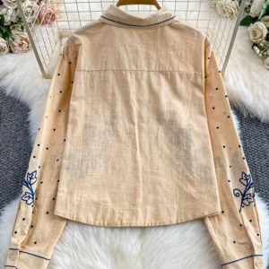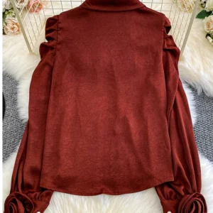 Women’s Autumn Shirt French chic Unique Embroidered Round Neck Lantern Sleeve Shirt Blouse Female Top BL234