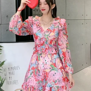 2025 New Spring/Autumn Women’s Dress French Fashionable Elegant Ruffled Long Sleeved Suit Collar A-line Mini Dress A201