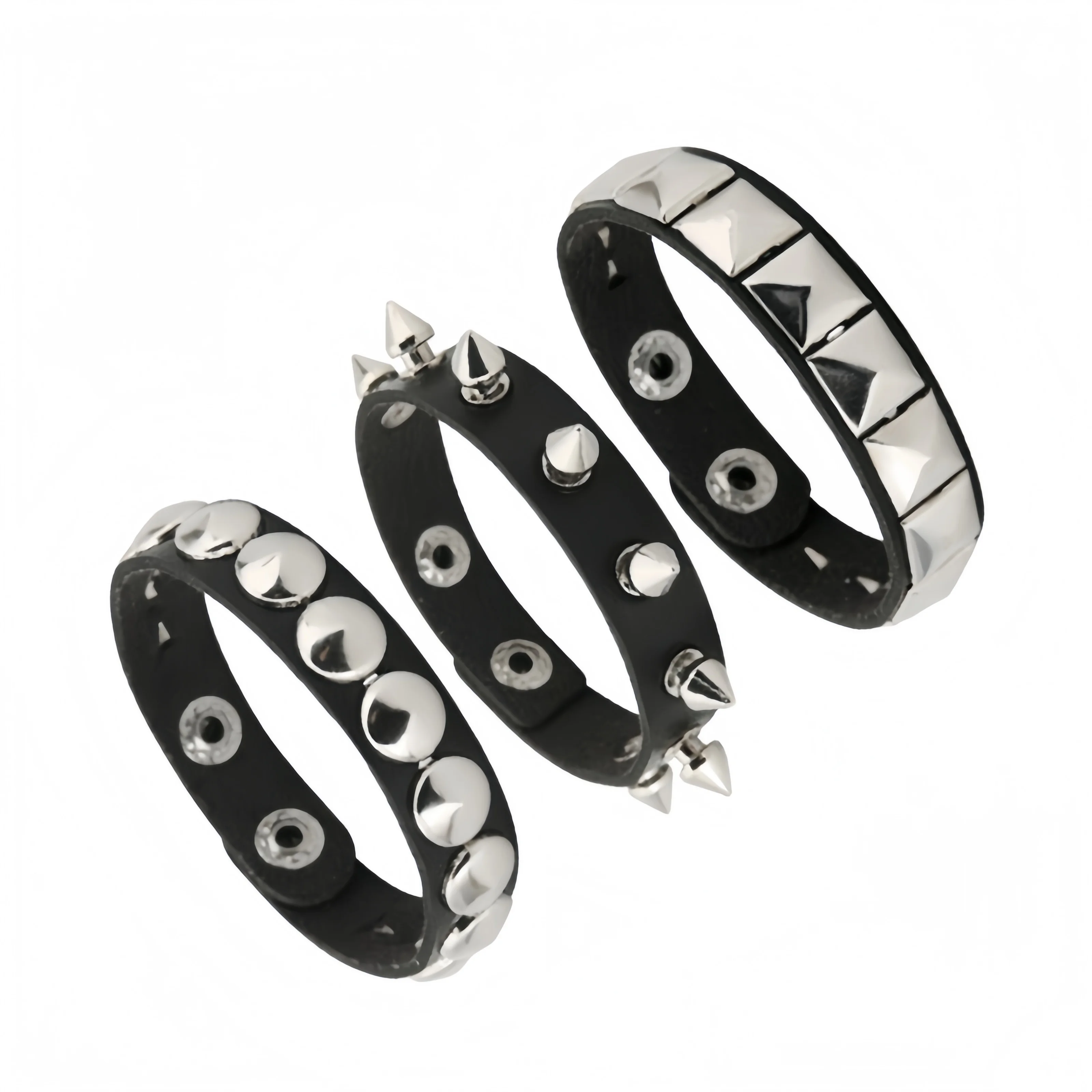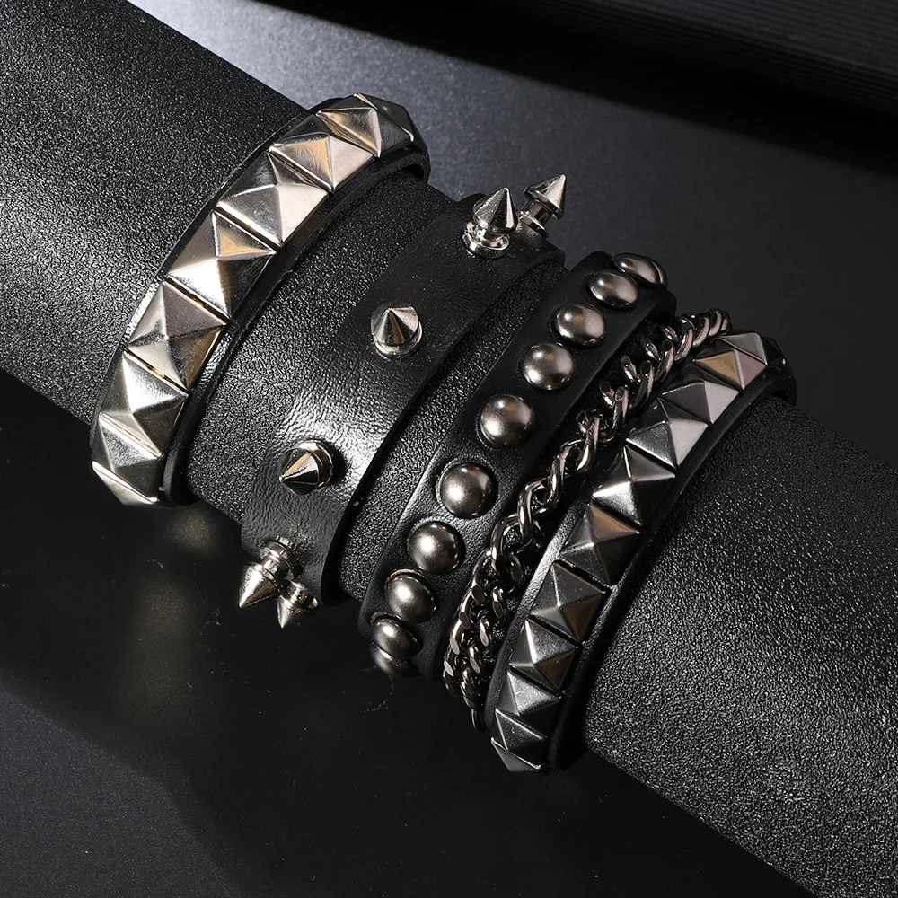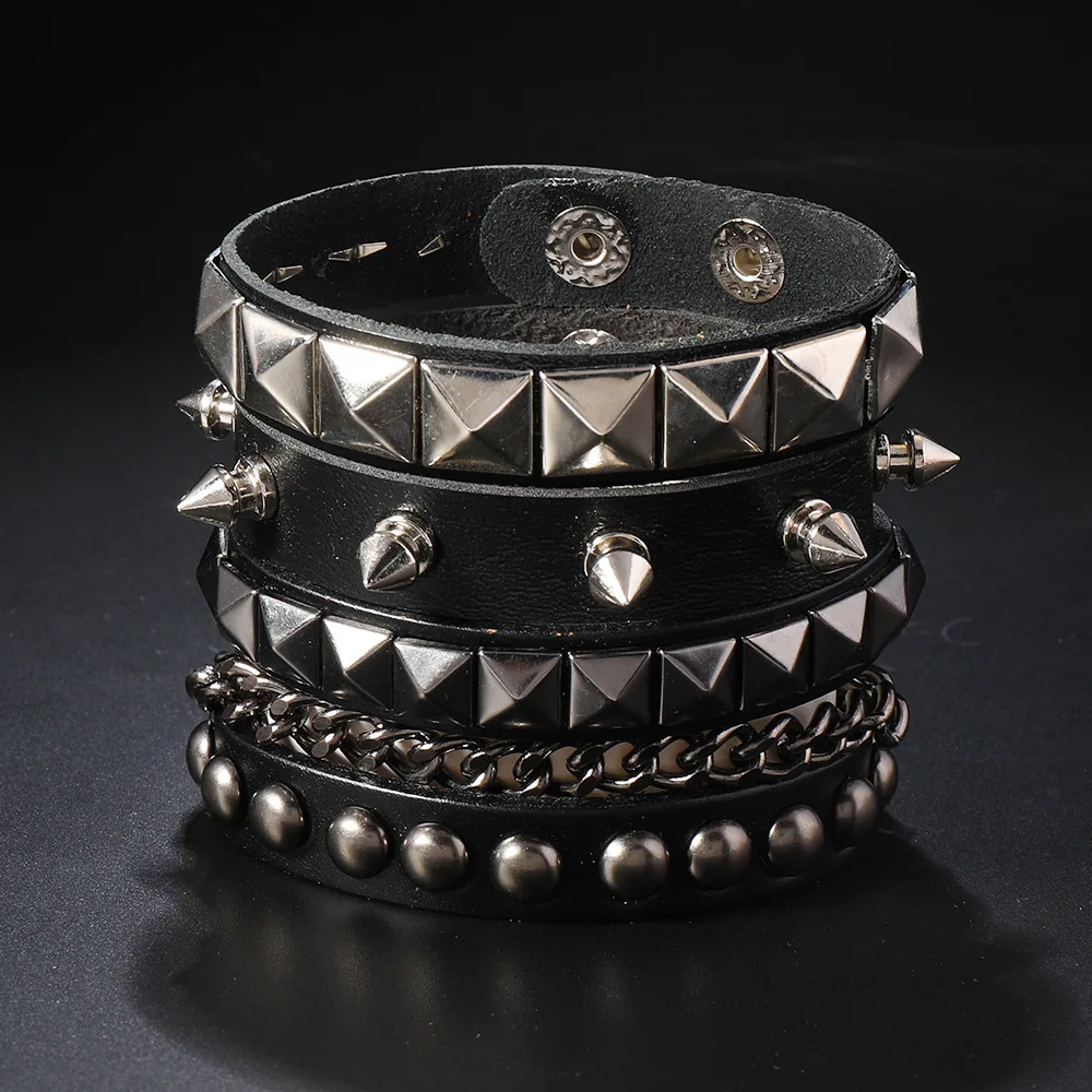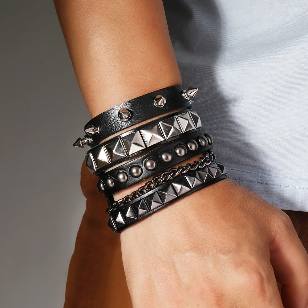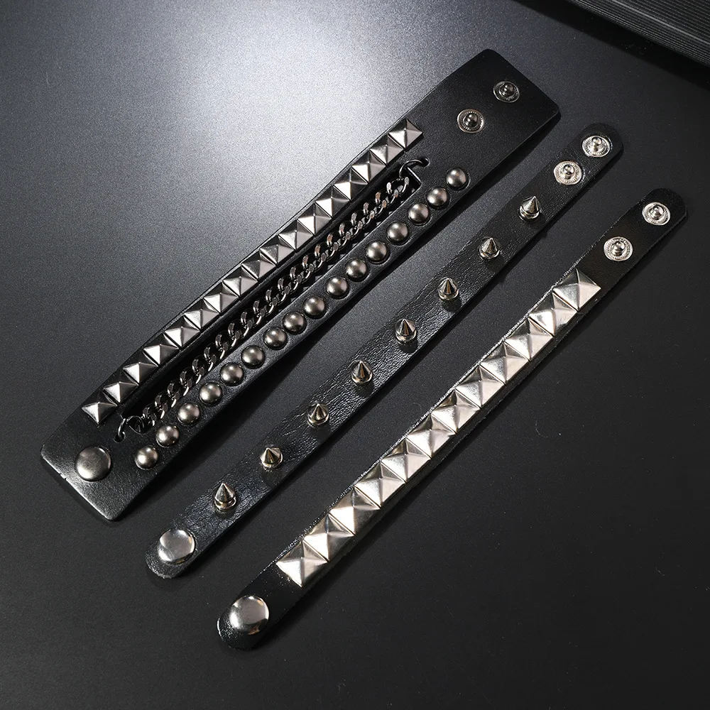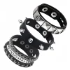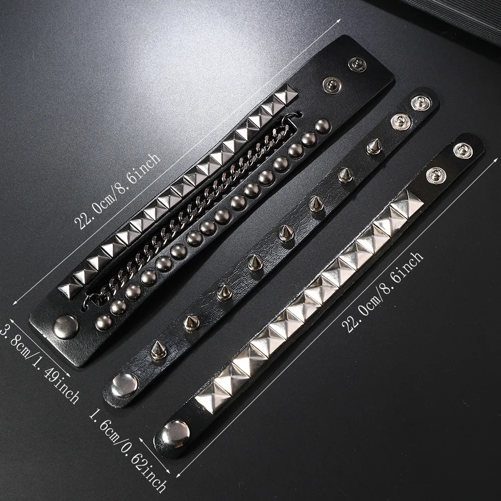 3PCS/Set Black Goth Boho Bracelets For Men Women Punk Gothic Spike Rivets PU Leather Bracelet Bangles Hip Hop Party Jewelry Gift