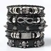 【Punk Leather Bracelet】: 5-piece black leather bracelet set, different hand-woven leather bracelets for men and women, you can wear them together or alone, or share them with your friends and family. Gothic skull bracelets, feather bracelets, stud bracelets, pentagram bracelets, a wide selection.