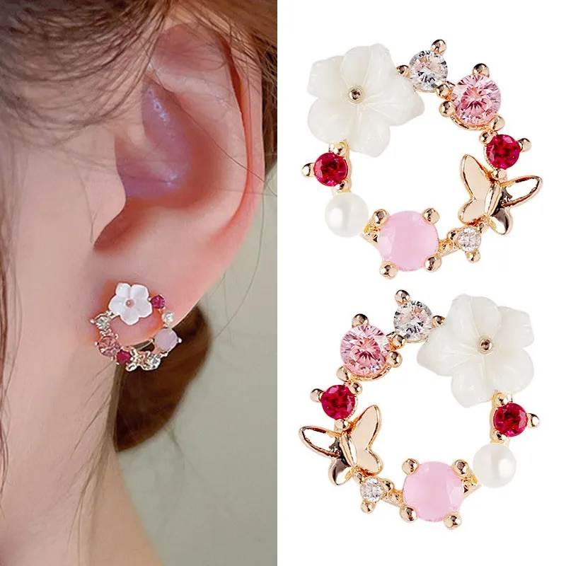 | Korean Fashion Earrings | Korean Fashion Crystal Pearl Butterfly Flower Wreath Earrings |