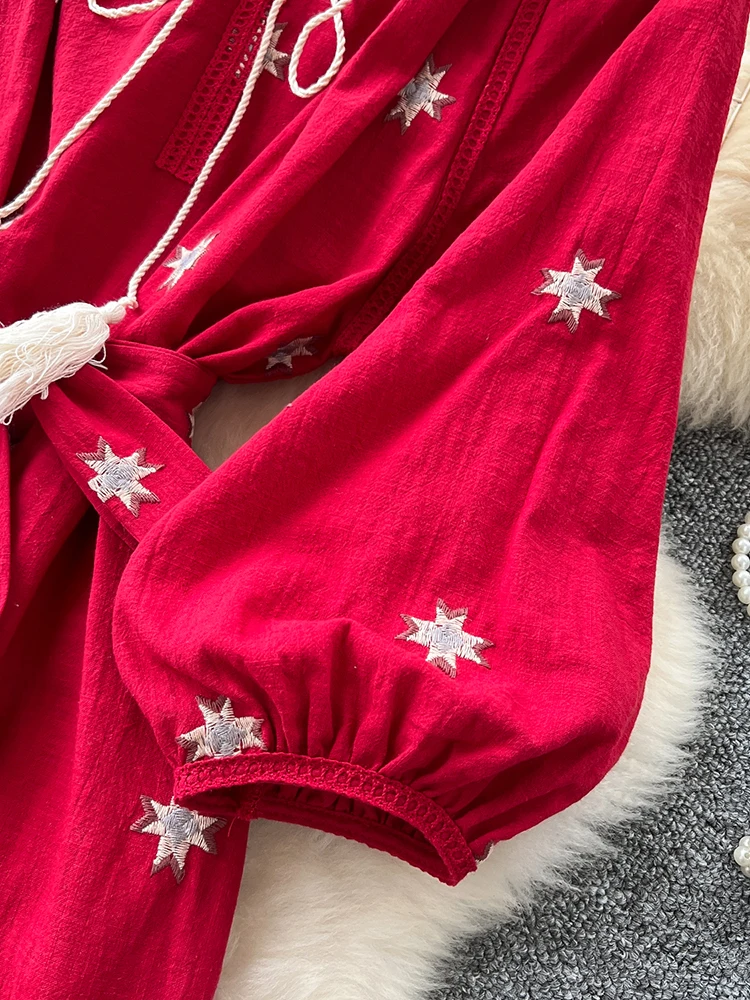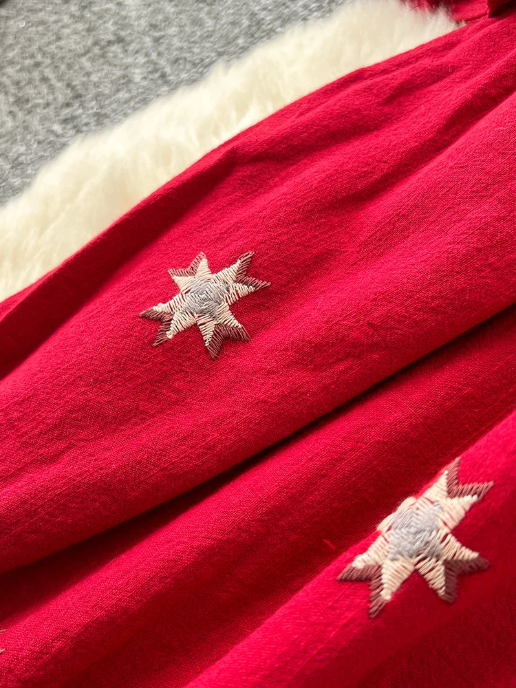 Due to the embroidery process, there may be paper on the back of this top. After receiving the package, please soak it in clean water for about 10 minutes before tearing off the paper on the back of the garment and cleaning it. Thank you!