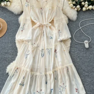 2025 Summer Bohemian Vacation Dress Women’s New Fashion Texture Embroidered Lace Chiffon Long Dress A33