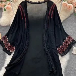 Women Summer Cardigan Coat Bohemian Retro Holiday Style Sunscreen Long-sleeved Heavy-duty Embroidered Fringed Wild Top D1819