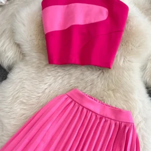 Women Summer Dress Fashion Suit Spicy Girl Strapless Bra Top Two-piece High Waist Draped Irregular Pleated Dress D3068
