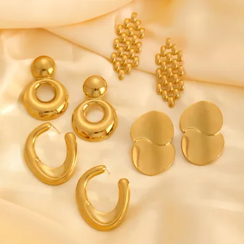 Fashion Stainless Steel Geometric Earrings For Women Metal Earing Jewelry 2025 Trending New Luxury Women’s Gold Color Earrings