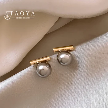 New French Minimalist Grey Imitation Pearl Pendant Earrings 2025 Fashion Jewelry Daily Wear Accessories for Girls Women‘s Party