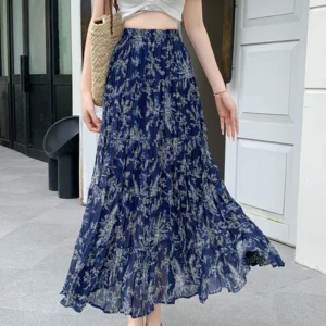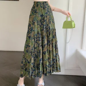 Retro Midi Skirt for Women in Spring Summer 2025 New Beach Style High Waist and Large Swing Floral Long Skirt Female S16